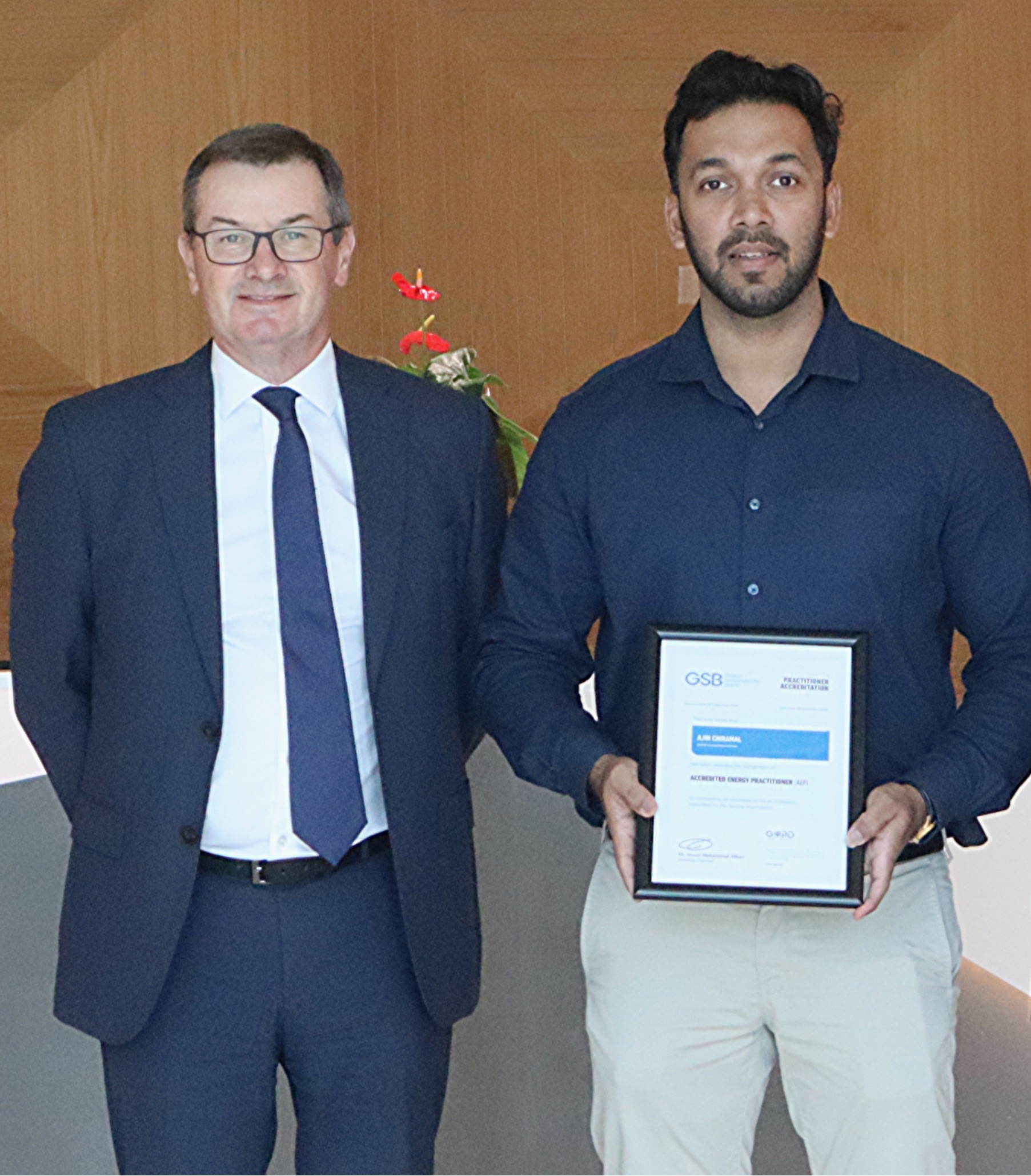 The Accredited Energy Practitioner (AEP) certification, jointly awarded by GORD and the Global Sustainability Board (GSB), recognises professionals with proven expertise in assessing, managing, and optimising energy performance within the built environment. It is regarded as one of the region’s leading credentials for sustainability and energy management practitioners.
